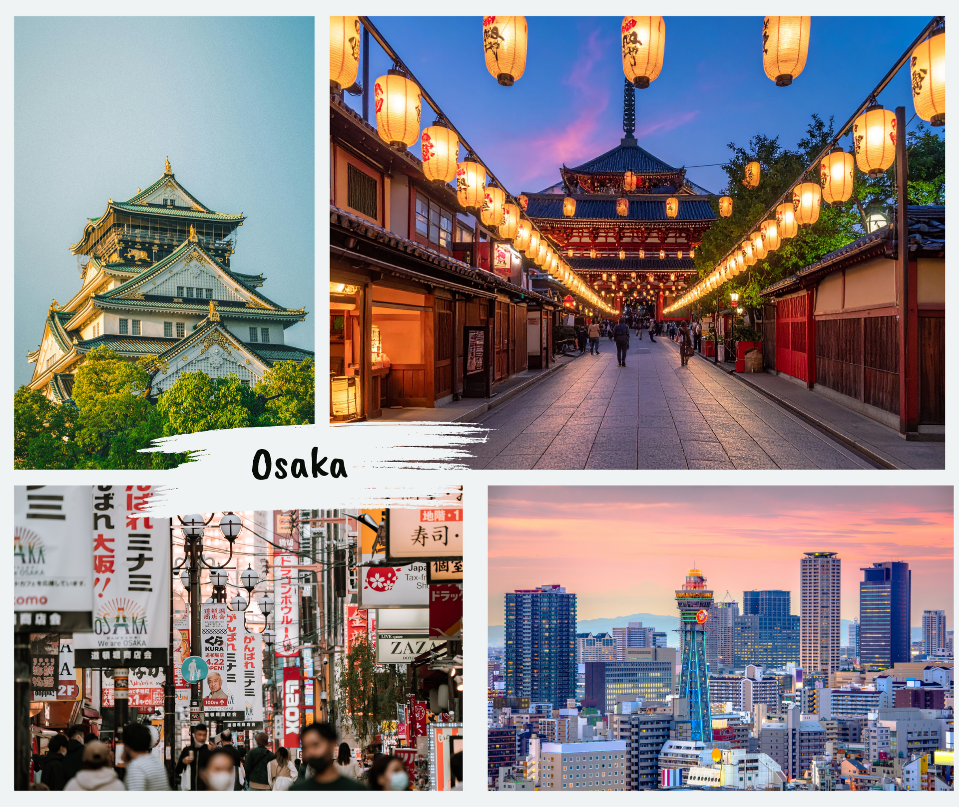 Osaka est depuis toujours une grande ville marchande, notamment grâce son emplacement idéal en bord de mer et en plein centre du Japon. Outre son commerce florissant, lui valant d’être surnommée “le garde-manger de la nation”, Osaka est réputée pour sa gastronomie, sa culture comique et son dialecte spécifique. Elle fut le fief du célèbre seigneur de guerre Toyotomi Hideyoshi qui y bâtit notamment son imposant château.